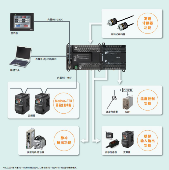 * 基本機型內(nèi)置10kHz(單相)6軸的高速計數(shù)器。