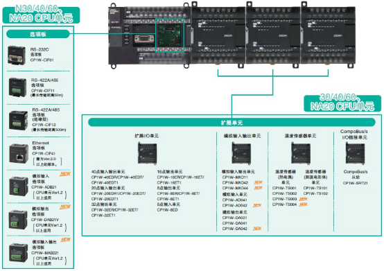 最多可安裝3個擴展單元。(30/40/60NA20 CPU單元)
